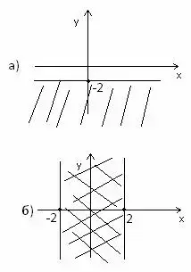 б) -1 < у < 4 б) - 2 < х < 2.