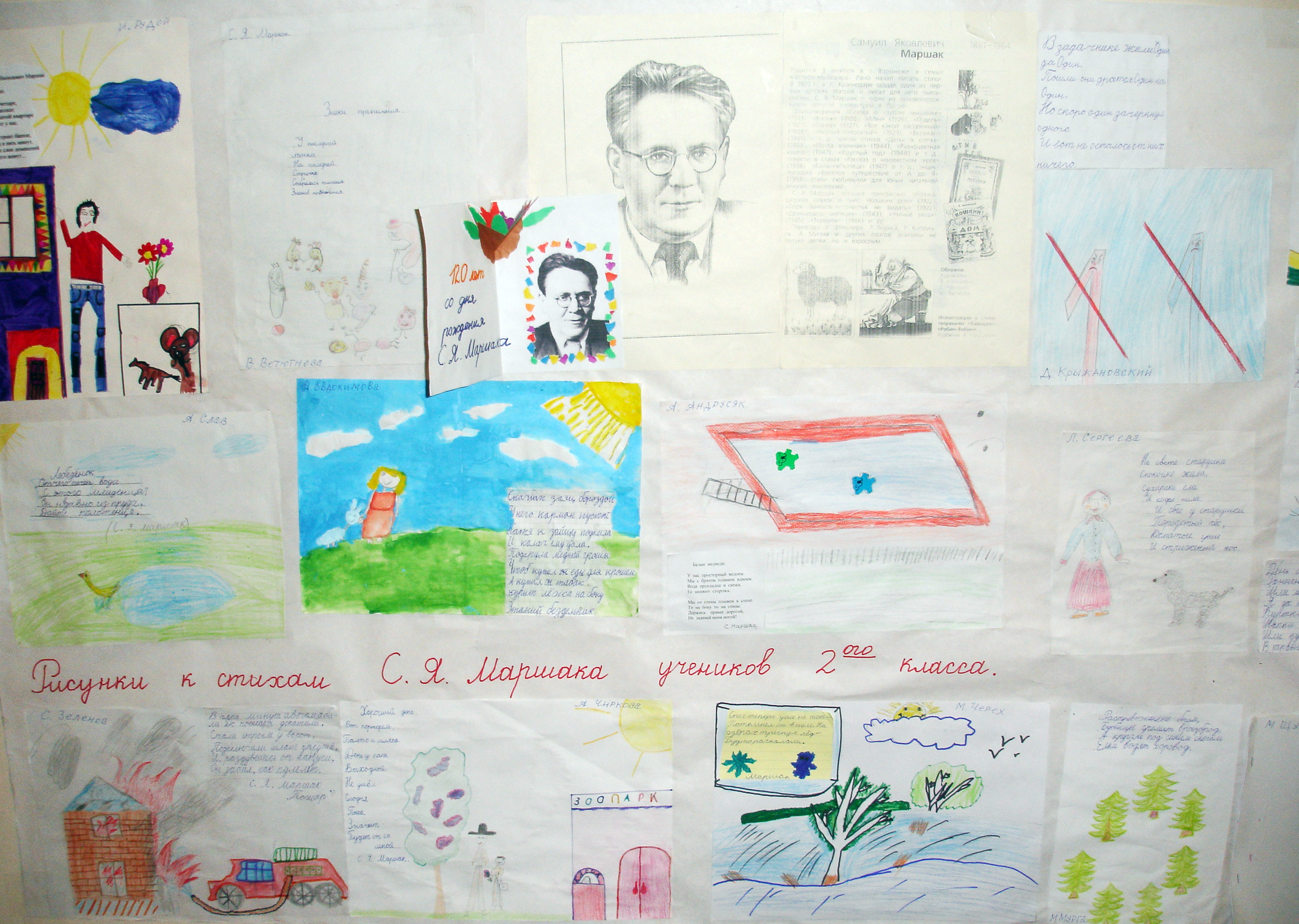 Предварительная подготовка: за 2 недели до мероприятия детям дается задание найти книги С.Я.Маршака, ознакомиться с произведениями, выучить понравившееся стихотворение наизусть, проиллюстрировать любое стихотворение автора. Каждый класс начальной школы готовит инсценировку стихотворения по выбору.