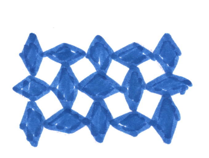 Ромбы с углами 600 и 1200, длина стороны 5 см (19 штук), равносторонние треугольники, длина стороны 5 см (15 штук)