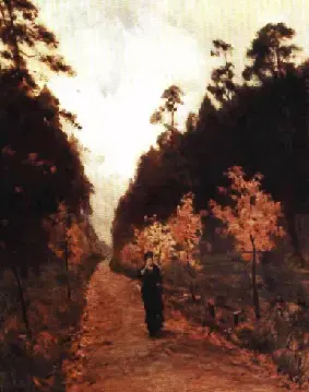 Это самый первый шедевр Левитана. Создавшему его художнику не было еще и 20 лет (забавный нюанс - фигуру женщины написал здесь Николай чехов, брат писателя). Сразу несколько важнейших для всего творчества мотивов соединились в нем дорога, осень, вечер. Есть в нем и то, что прославило впоследствии художника. -пейзажный мотив, говорящий на языке человеческой души.
