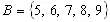 С, в которое запишем общие элементы множеств А и В. Общими у них являются элементы 5 и 6, значит
