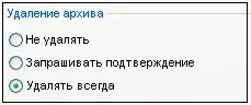 - Во вкладке Дополнительно установите переключатель Удалять всегда, чтобы полностью распакованный архив не занимал место на винчестере.