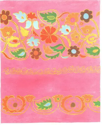 Кожа окрашивалась почти во все цвета радуги, затем, при создании узора, она прорезалась по орнаментальным трафаретам. Узоры из кусочков кожи составлялись в техники мозаики с одновременной сшивкой и расшивкой орнаментальных мотивов шелковыми, иногда золотыми и серебряными нитями.