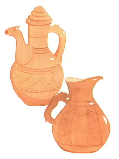 Самобытность творчества гончаров проявлялась в "зооморской" керамике - сосудах с изображениями различных птиц и животных. Вылепленные в круглой скульптуре, они украшали ручки и сливные носики кувшинов, кумганов.