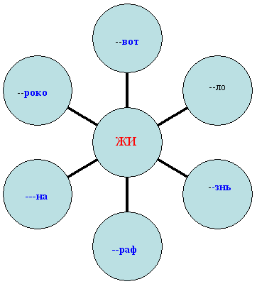 Придумайте слова, где этот слог встречается в середине слова, вначале, в конце.