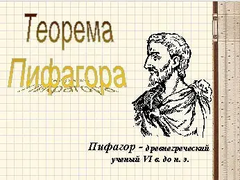 (Слайд 3) Знаменитый греческий философ и математик Пифагор Самосский, именем которого названа теорема, жил около 2,5 тысяч лет тому назад. Дошедшие до нас биографические сведения о Пифагоре отрывочны и далеко недостоверны. С его именем связано много легенд.