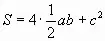 С другой стороны этот квадрат составлен из четырех равных прямоугольных треугольников, площадь каждого из которых равна