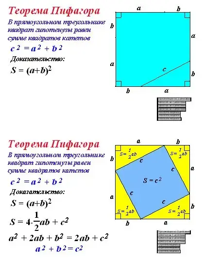 "В прямоугольном треугольнике квадрат гипотенузы равен сумме квадратов катетов".