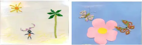 В 3 классе мы с ребятами начали работу с бисером с самых простых изделий (стрекоза, ящерица, девочка). При изготовлении этих, на первый взгляд, простых работ у ребят на первом этапе возникали трудности. Т.к. эта работа требует от детей усидчивости, терпения, согласованности в работе глаза и руки, совершенствованию координации движений, гибкости, точности в выполнении действий. Но при этом работа так завлекла, заворожила детей, что многие перешли к выполнению более сложных работ (бабочки, фенечки…).