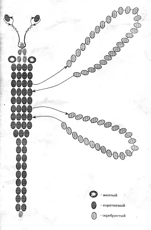 Плетение стрекозы начинаем выполнять с хвоста.