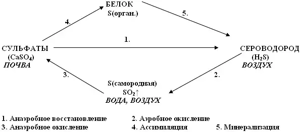 2. Этапы круговорота химического элемента серы.