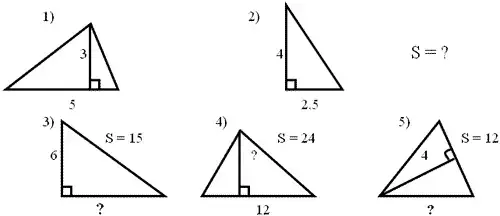 1. Подумайте, как можно вычислить площади треугольников на рисунке. Вычислите и запишите ответы. Сделайте вывод.