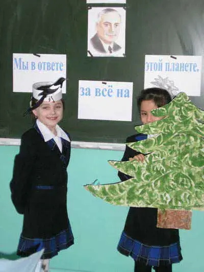 Учитель. Ёлочку-дерево автор наделил человеческими чертами.