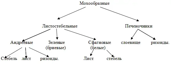 3. А) Отдел Мохообразные объединяет два класса и несколько подклассов (Приложение 1). (5 мин.)