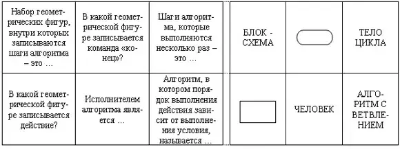 - закрепить представление об алгоритме, схеме алгоритма, ветвлениях и циклах в алгоритме;
