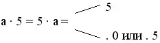 б) если получается двузначное число, то в разряде единиц стоит 0 или 5 (последняя цифра произведения 0 или 5).