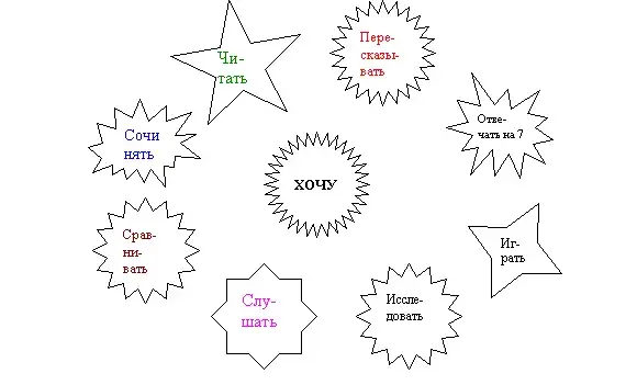 (На доске расположены по кругу снежинки, на которых записаны слова: слушать, читать, пересказывать, сочинять, отвечать на вопросы, сравнивать, играть, исследовать, решать примеры, бегать на 100 метров. В центре - снежинка со словом ХОЧУ. Дети объясняют, что на этом уроке мы не будем решать примеры и бегать на 100 метров)