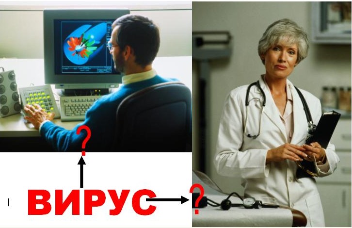 Что произошло? Как вы объясните смысл слова вирус? Как объяснили бы значение этого слова люди изображённые на картинках? (доктор и программист) Рисунок 2 Что нужно сделать, если вдруг вы обнаружили вирус? Определим название файла заражённого вирусом. ~ - = и = - , - , - = ~ ~ - ~ = , но~ = ~ - = ,а = |