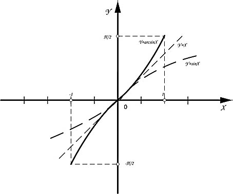 имеем y = arcsin(sin x) = x, ибо sin y = sin x и