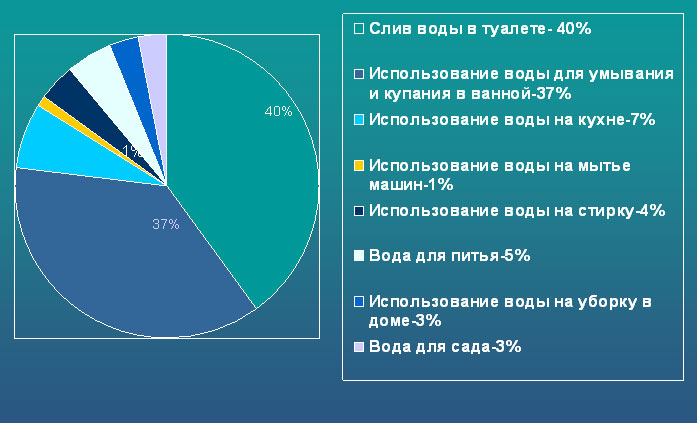 | В нашей стране ежегодно расходуется около 117,3 км3 (117,3·109 млрд. тонн) воды, из них 50% идет в сельское хозяйство,40% - в промышленность, 10% - на бытовые нужды [1]. | ![]() |