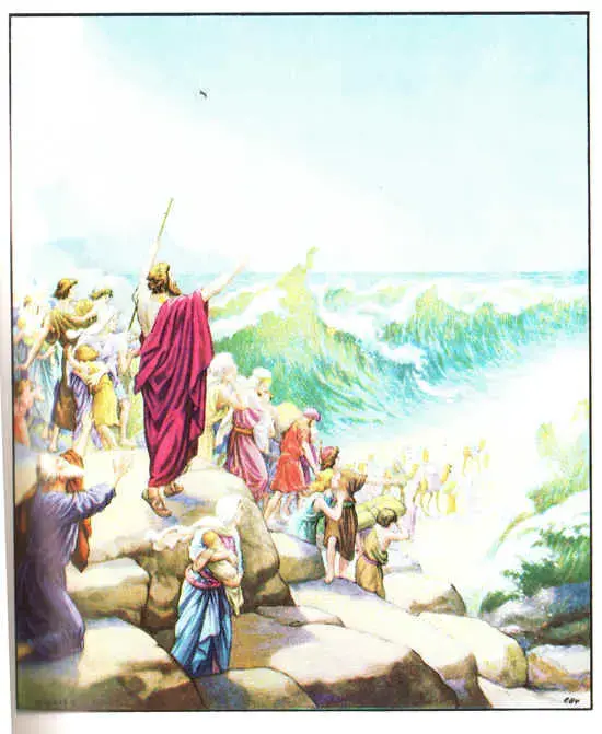 Составить рассказ по иллюстрации "Переход израильтян через Чермное море", используя письменную опору.