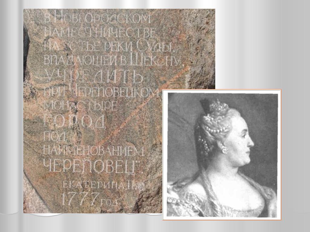 "Всемилостивейшее повелеваем в Новгородском наместничестве на устье реки Суды, впадающей в Шексну, учредить при Череповском монастыре для пользы водяной коммуникации город Череповец, и … представить план, как оному городу быть надлежит" <Рисунок 20>, <Рисунок 21>.