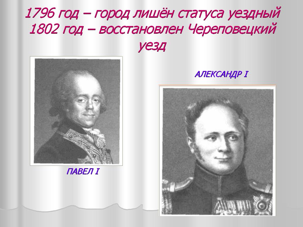 В 1796 году император Павел I лишил часть русских городов статуса уездный, в их число попал и Череповец. В новый XIX век, наш город вступил в качестве заштатного, приписанного к Устюженскому уезду. Новый император Александр I в 1802 году восстановил череповецкий уезд. Но население уже уехало из-за упадка города. В 1806 году население по сравнению с 1780 годом уменьшилось и составляло 450 человек <Рисунок 24>.