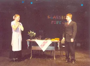 M: (Regretfully) You know, he continues buying stale bread, never a cake, never a pie, never anything else.