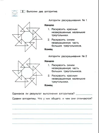 - Как вы раскрасили фигуру, выполняя алгоритм № 2?