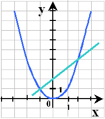 Найти точки пересечения параболы у=х2 и прямой у=х+2. (Один ученик выполняет у доски, остальные в тетради). Ответ: (-1;1); (2;4). (Рисунок 1)
