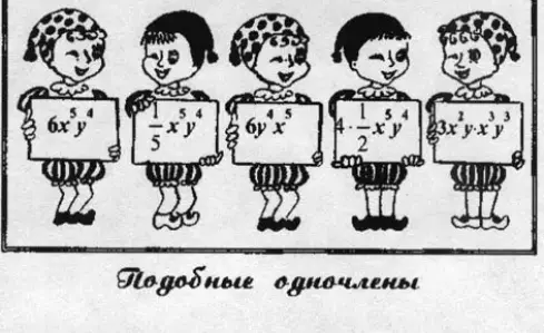 - уровень: ученик правильно формулирует алгоритмы выполнения арифметических действий над одночленами.