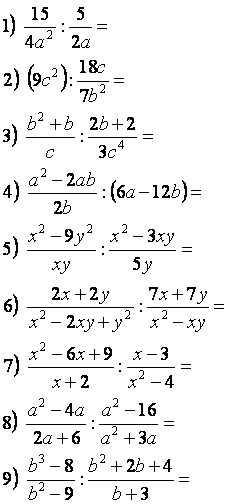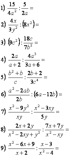 Вывести правило деления дробных выражений, основываясь на ранее изученном правиле деления дробей, закрепить данное правило на примерах.
