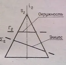 - Эллипс, если секущая плоскость Σ (Σ2) не параллельна и не перпендикулярна оси i(i2).