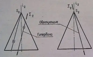- Две образующие, если секущая плоскость θ (θ2) параллельна оси i(i2) (рис.3).