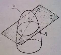 Линия q может быть получена как линия пересечения поверхности Ф и вспомогательной плоскости Σ, проведенной через прямую a : q = Ф∩ Σ.