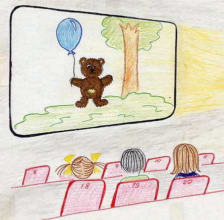 - Театр, в котором показывают заранее отснятое на кинопленку действие, называется… (Кинотеатр). <Рисунок 4>