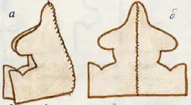 Получившиеся половинки соединяем по линии спины (а) и по линии живота (б) петельным швом |