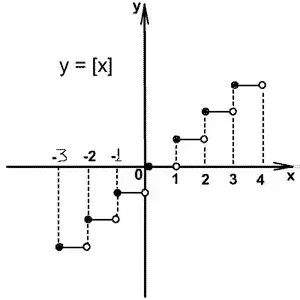 - Рассмотрим функцию y = [x]. Например, в точке х = 1 функция терпит разрыв. Это - точка разрыва 1-го рода.