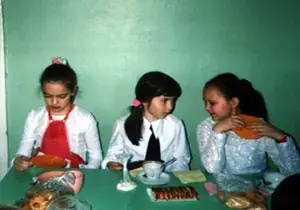 III. Накрытие стола к чаепитию под 1-й куплет песни "Help your mother…".