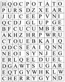 V. Now, please, take your crosswords and change them. Write all the words about food that you can find in them.
