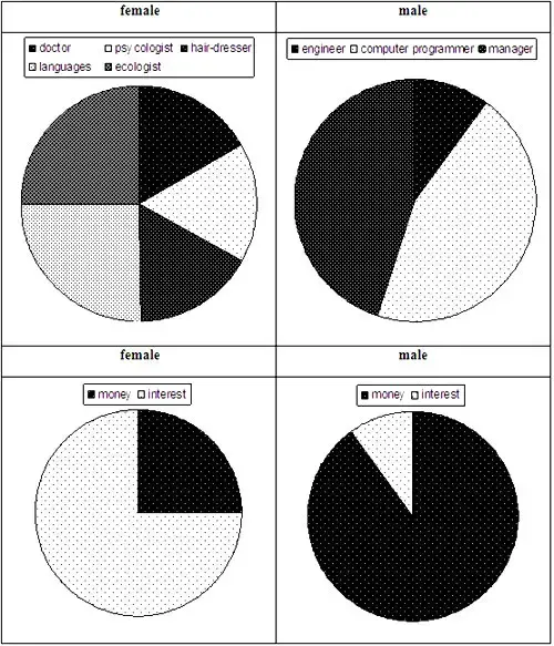 (Учащийся-психолог анализирует результаты опроса старшеклассников и сравнивает с опросом, проведенным среди британских школьников. На доске - диаграмма, составленная психологом после анкетирования учащихся 11 классов, и таблица, показывающая отношение британских школьников к выбору профессии.)