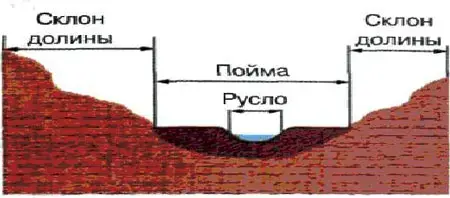 Речная долина - относительно узкое, вытянутое в длину, извилистое углубление, образованное работой стекающей по руслу воды. Долина имеет русло, пойму, террасы.