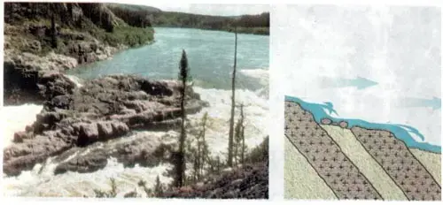 Часто на реках, особенно на горных, образуются пороги - выходы твёрдых пород, нагромождения камней, пересекающих русло. Река, перепрыгивая их, бурлит, пенится.