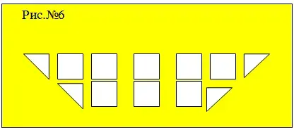 Они используют шаблон квадратов. Изготавливают самостоятельно 5 квадратов. Каждый квадрат делят пополам перегибанием. (Рис№ 7)