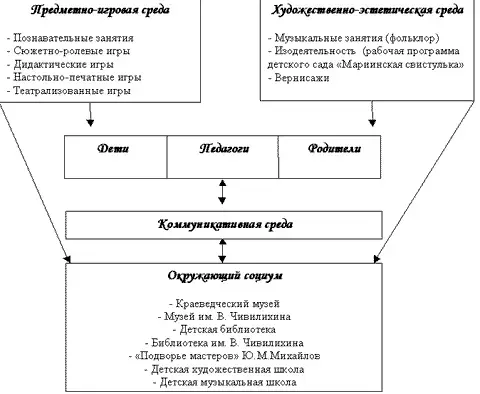 - По характеру контактов: в рамках ДОУ, работа в социуме.