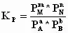 Для гомогенных реакций газов при небольших давлениях (когда газ подчиняется законам идеальных газов) вместо концентрации компонентов пользуются величинами соответствующих парциальных давлений. В этом случае выражение для константы химического равновесия выглядит следующим образом: