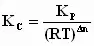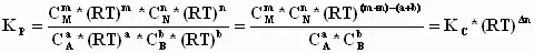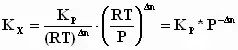 Известно, что константа химического равновесия, выраженная через парциальные давления реагентов (Кр) связана с константой химического равновесия, выраженной через равновесные концентрации компонентов смеси (Кс) уравнением