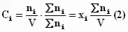 ni - число молей i-го компонента