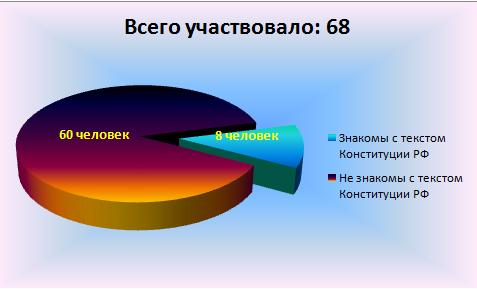 Учитель: Хорошо, давайте узнаем, что думают и что знают российские граждане о Конституции РФ. У нас имеются данные социологического опроса, который провели ученики 10 «Б» класса на улицах города Павловский Посад. См. диаграмму (Рисунок1).