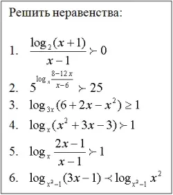 Преимущество приведенных условий равносильности состоит в том, что за один шаг освободились от логарифмов и переменных оснований. Если основание логарифма и подлогарифмическое выражение являются рациональными функциями, можно пользоваться методом интервалов.